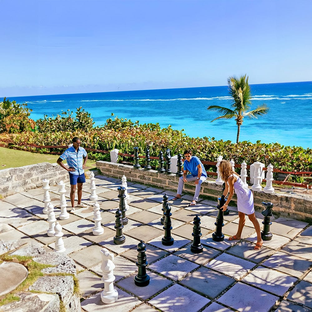 However, if you like heavier chess pieces or live in extremely windy areas, we’ve solved that problem. While the pieces are lightweight enough for children to move, they feature removable screw-on bases. You can easily add sand or water to give them extra weight and stability for those windier outdoor locations. Although water is easier to add to the bases, sand is the better long term choice.
